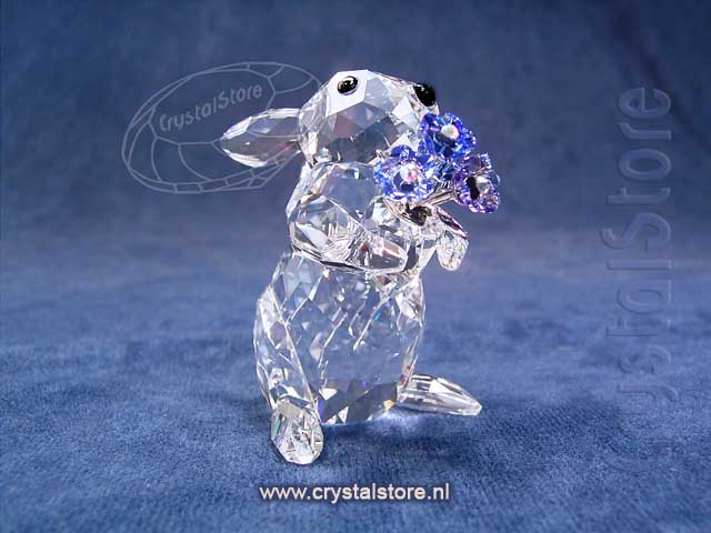 This sweet little Rabbit in clear faceted crystal holds a bunch of forget-me-nots in Sapphire and Light Sapphire crystal in his paws. The leaves and stems are from silver-tone metal. Each flower has a heart of sparkling Aurora Borealis crystal. An ideal gift for Mother's Day, Valentine's Day, or just bringing spring into your home.
