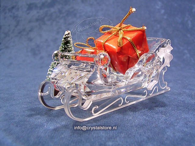 This Swarovski crystal sleigh was part of the “Exquisite Accents” group and it came with two little red wrapped presents and a small tree. Nice to combine with the bright Santa Claus and reindeer.