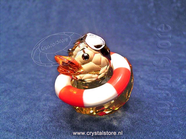 Dit humoristische eendje, behorend tot de familie van de vrolijke eendjes, is werkelijk de vreemde eend in de bijt. Hij is de gelimiteerde uitgave van de familie. De snavel van Sun kristal op zijn kop van Light Topaz kristal geeft hem een een zomerse uitstraling. Met zijn siliconen zwembandje kom je helemaal in de stemming om naar het strand te gaan